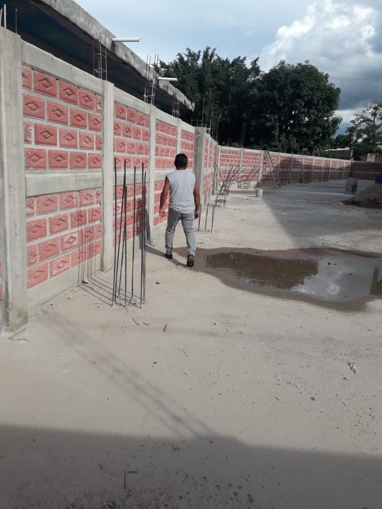 CONSTRUCCIÓN DE 65.74 M DE BARDA PERIMETRAL A BASE DE BLOCK DE CONCRETO APARANTE DE 14X20X40 CM CONFINADO CON CASTILLOS DE ARMEX DE 0.15 X 0.20 CM DE ANCHO, CADENA DE DESPLANTE Y CADENA DE CERRAMIENTO DE 0.15 X 0.20 CM A BASE DE VRS DE 3/8”, CON REFUERZO INTERMEDIO DE ARMEX 10X10-4, CONCRETO F’C=200 KG/CM2