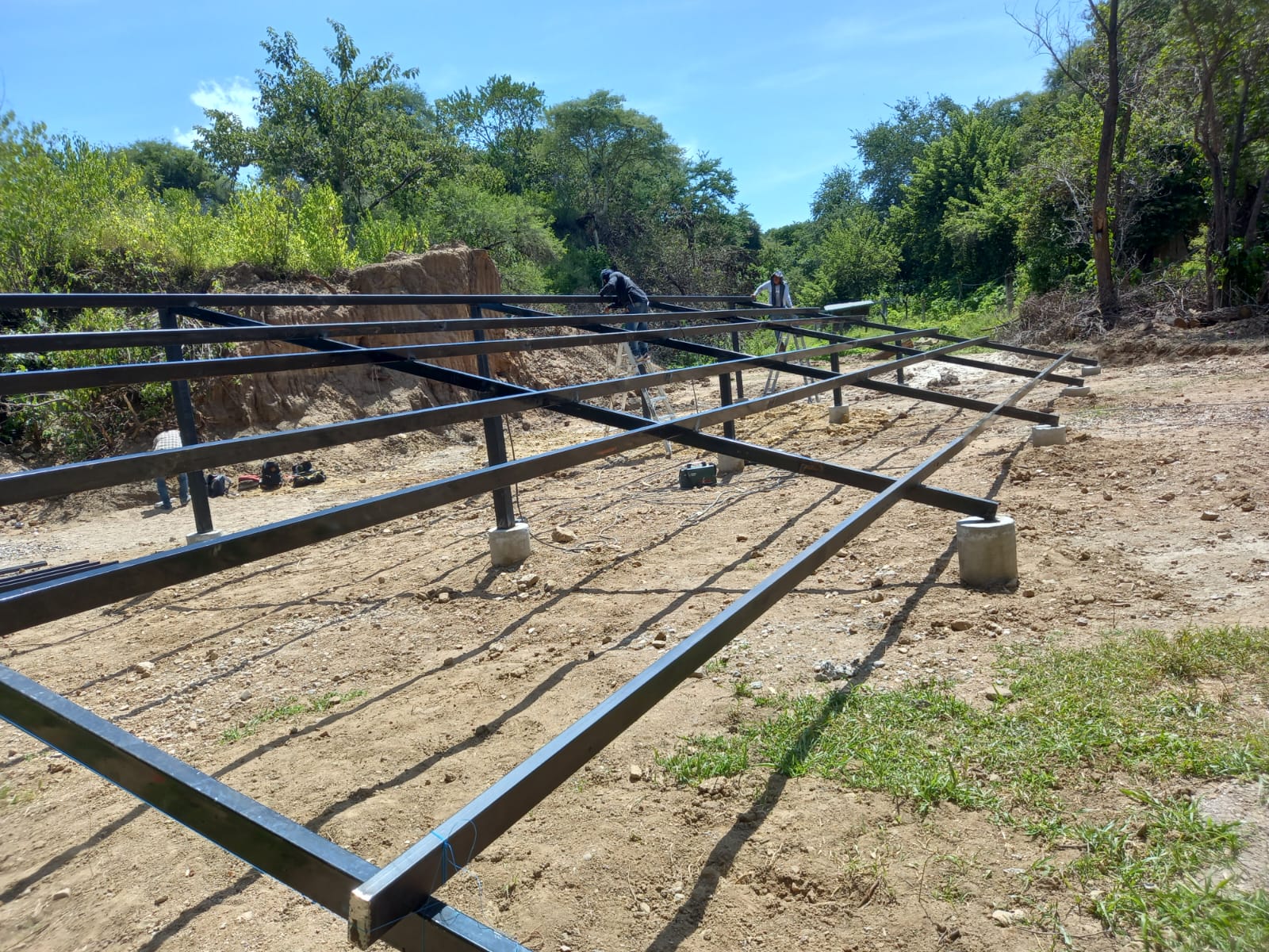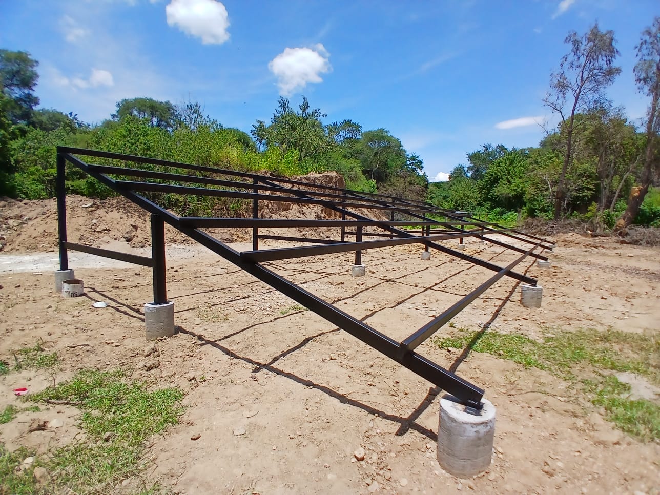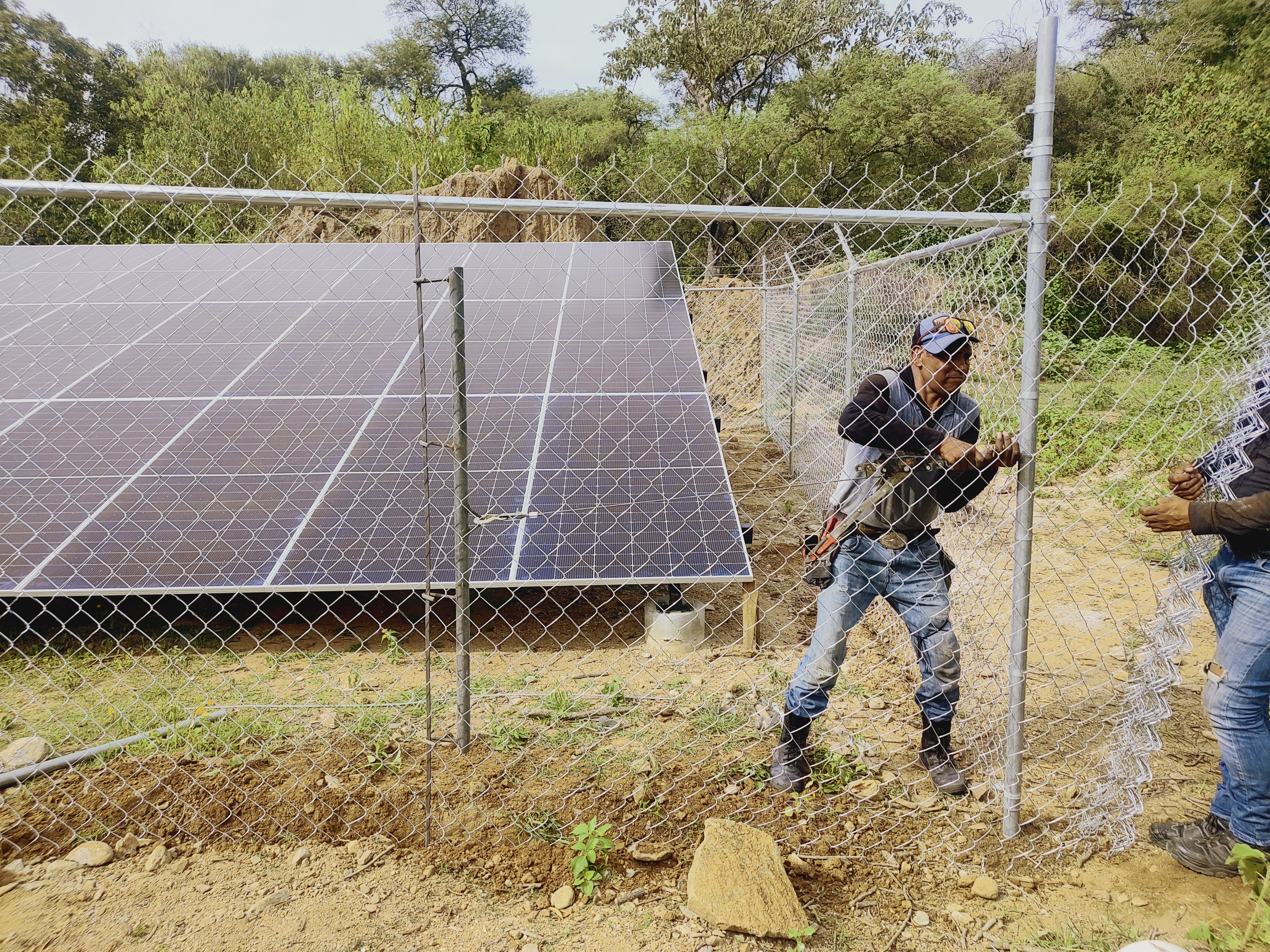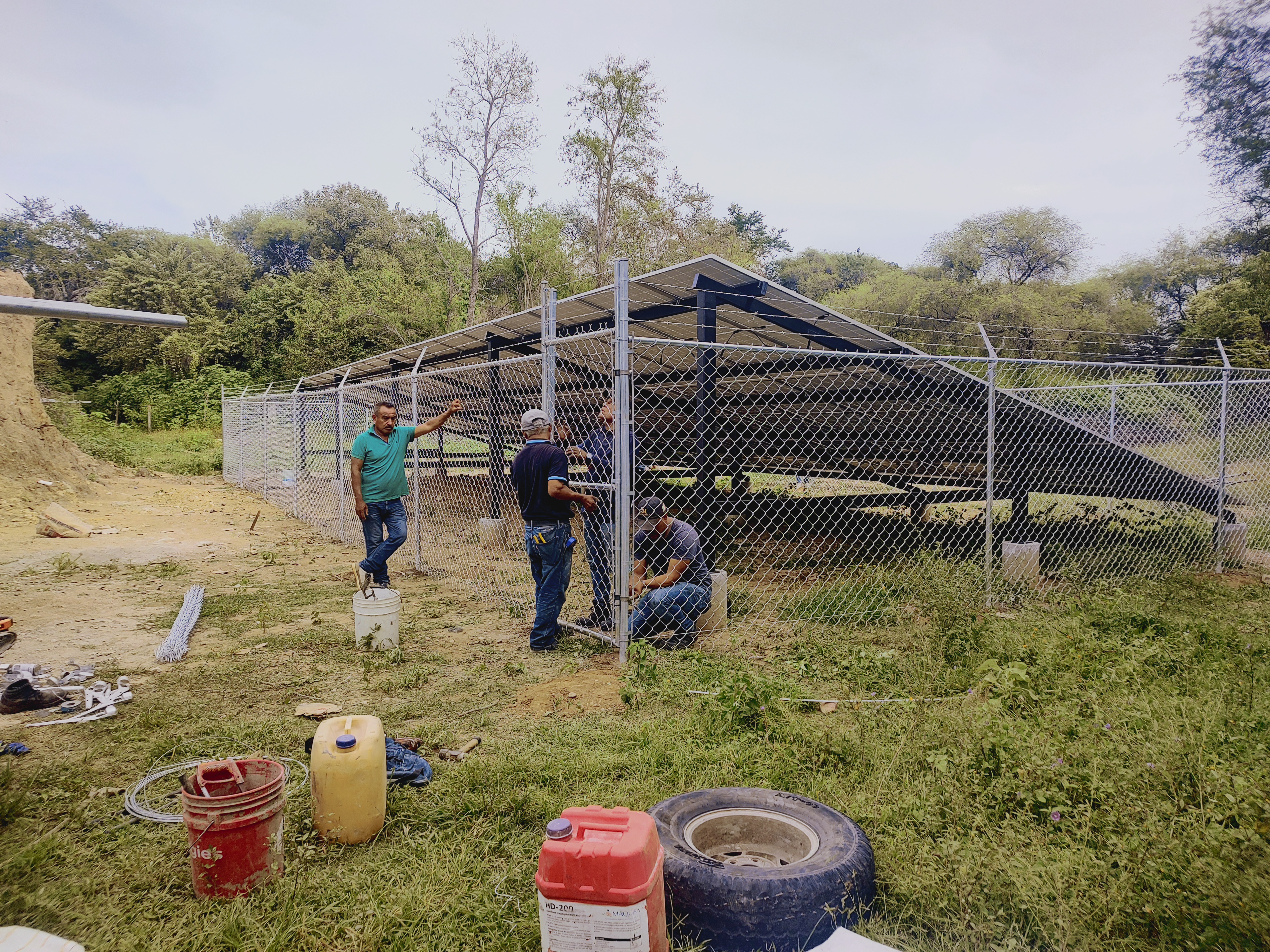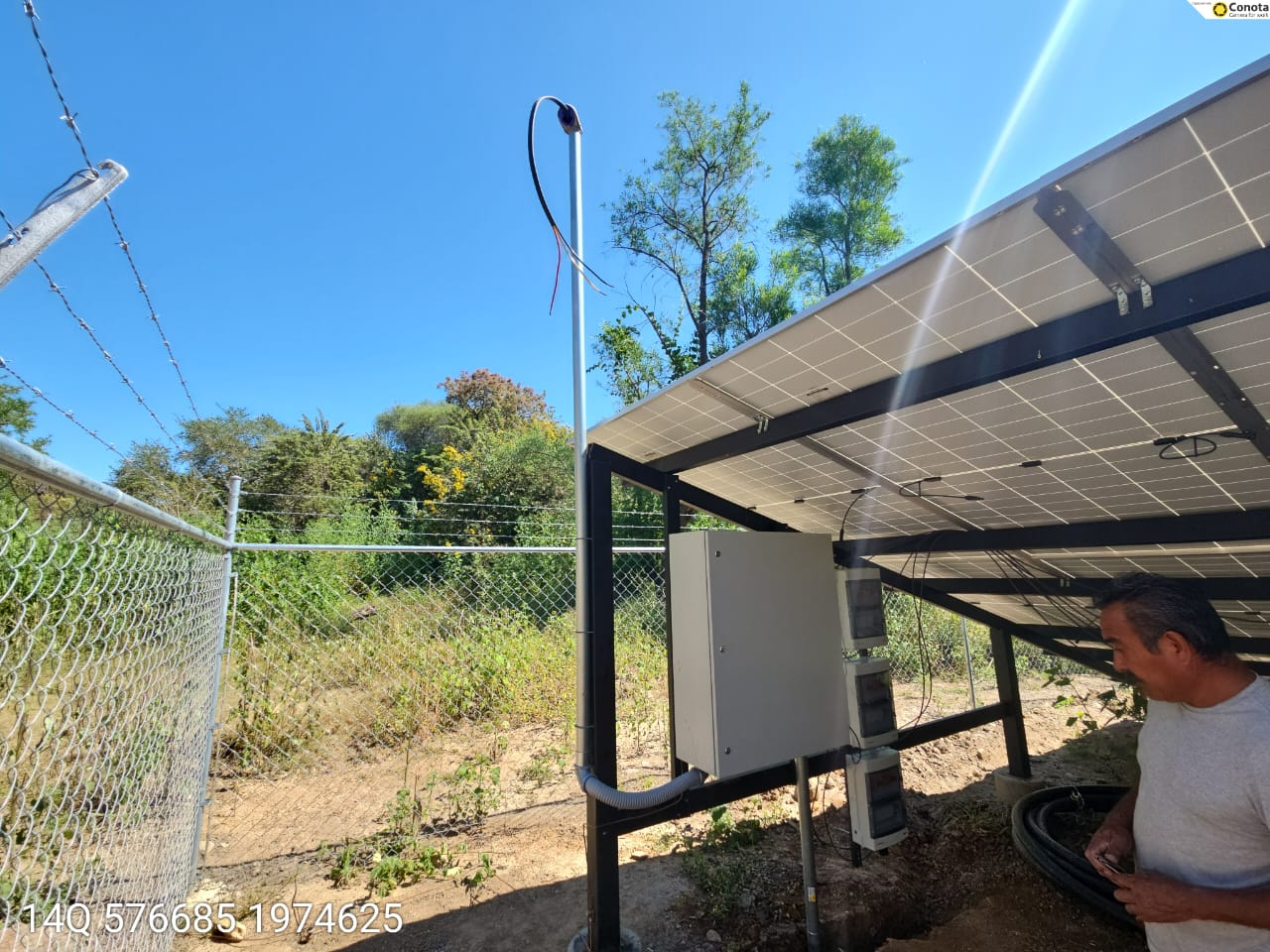 TRAZO Y NIVELACIÓN MANUAL EN 200.00 M2 DE TERRENO PARA ESTABLECER EJES Y REFERENCIAS, 54.34 M3 EN EXCAVACIÓN EN CORTES DE TERRENO EN MATERIAL TIPO II-A A MAQUINA, AFINE DE 200 M2 DE TERRENO A MAQUINA, EXCAVACIÓN MANUAL DE 3.24 M3 EN CEPAS EN MATERIAL TIPO II-A Y CONSTRUCCIÓN DE 5.40 M2 DE PLANTILLA DE 05 CM DE ESPESOR A BASE CONCRETO F´C=100 KG/CM2; HABILITADO DE ACERO EN ZAPATAS Y DADOS CON VARILLA DEL No. 3 (3/8”) Y ACERO DE REFUERZO DEL No. 02 PARA ESTRIBOS, CONSTRUCCIÓN DE 5.94 M3 DE CONCRETO F´C=250 KG/CM² EN ZAPATAS Y DADOS; SUMINISTRO Y COLOCACIÓN DE ESTRUCTURA METÁLICA A BASE DE PTR DE 4” Y TUBULAR DE 4”X2”, SUMINISTRO E INSTALACIÓN DE 48 PANELES SOLARES CONNERA 610WP 132CEL, SUMINISTRO Y COLOCACIÓN DE VARIADOR FORWARD MP 3X230 V 55A, SUMINISTRO Y COLOCACIÓN DE SHIELD STRING BOX E INSTALACIÓN DE EQUIPO PARA SELECCIÓN DE ENERGÍA SOLAR O ENERGÍA CONVENCIONAL, INSTALACIÓN DE REACTOR DE ARMÓNICOS 90A Y COLOCACIÓN DE GABINETE; SUMINISTRO Y COLOCACIÓN DE ARRANCADOR A TENSIÓN REDUCIDA Y COLOCACIÓN DE CABLE SUMERGIBLE DE 3X8 Y COLOCACIÓN DE 60 ML DE CERCA A BASE DE MALLA CICLÓNICA CAL. 13.5 DE 2 .00 MTS DE ALTURA CON POSTES DE ARRANQUE DE FLEXIÓN DE 2" (60MM) E INTERMEDIOS DE 1 1/2" (48MM).,
