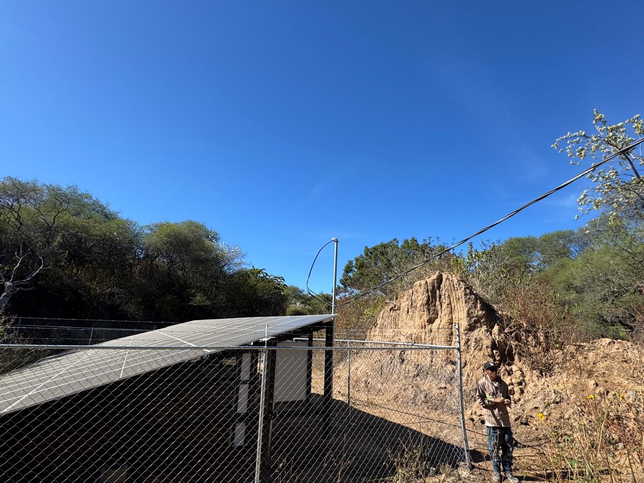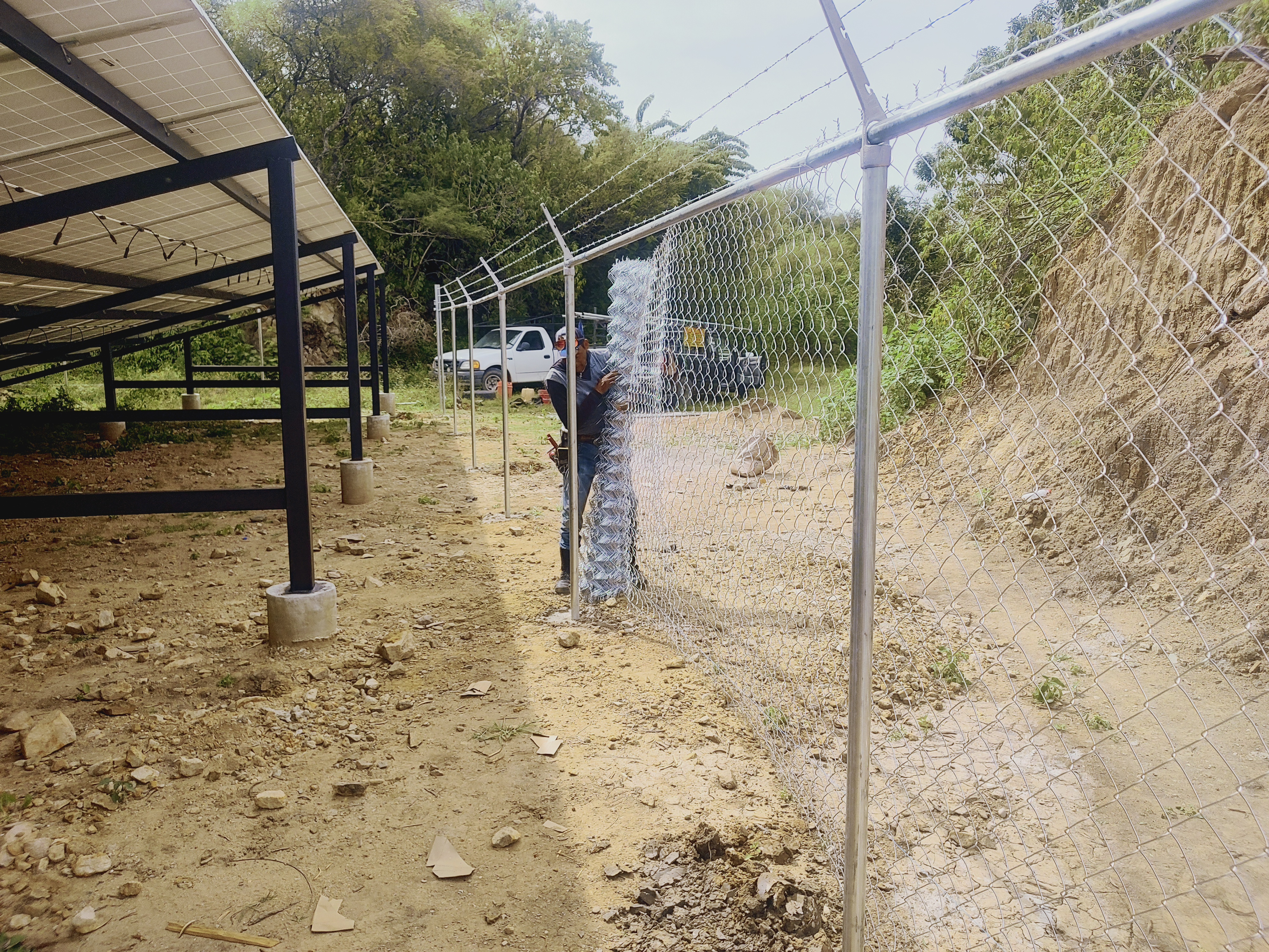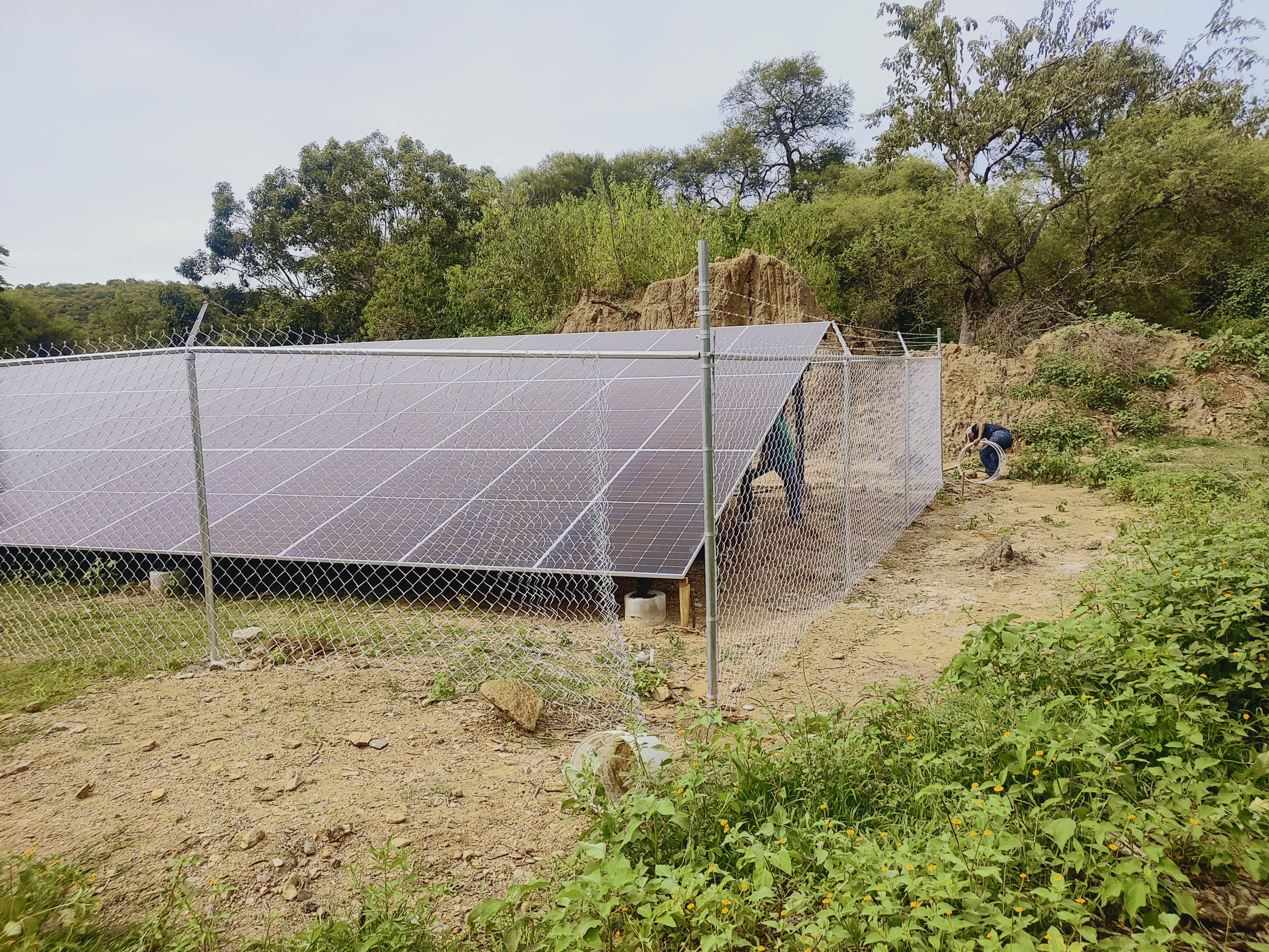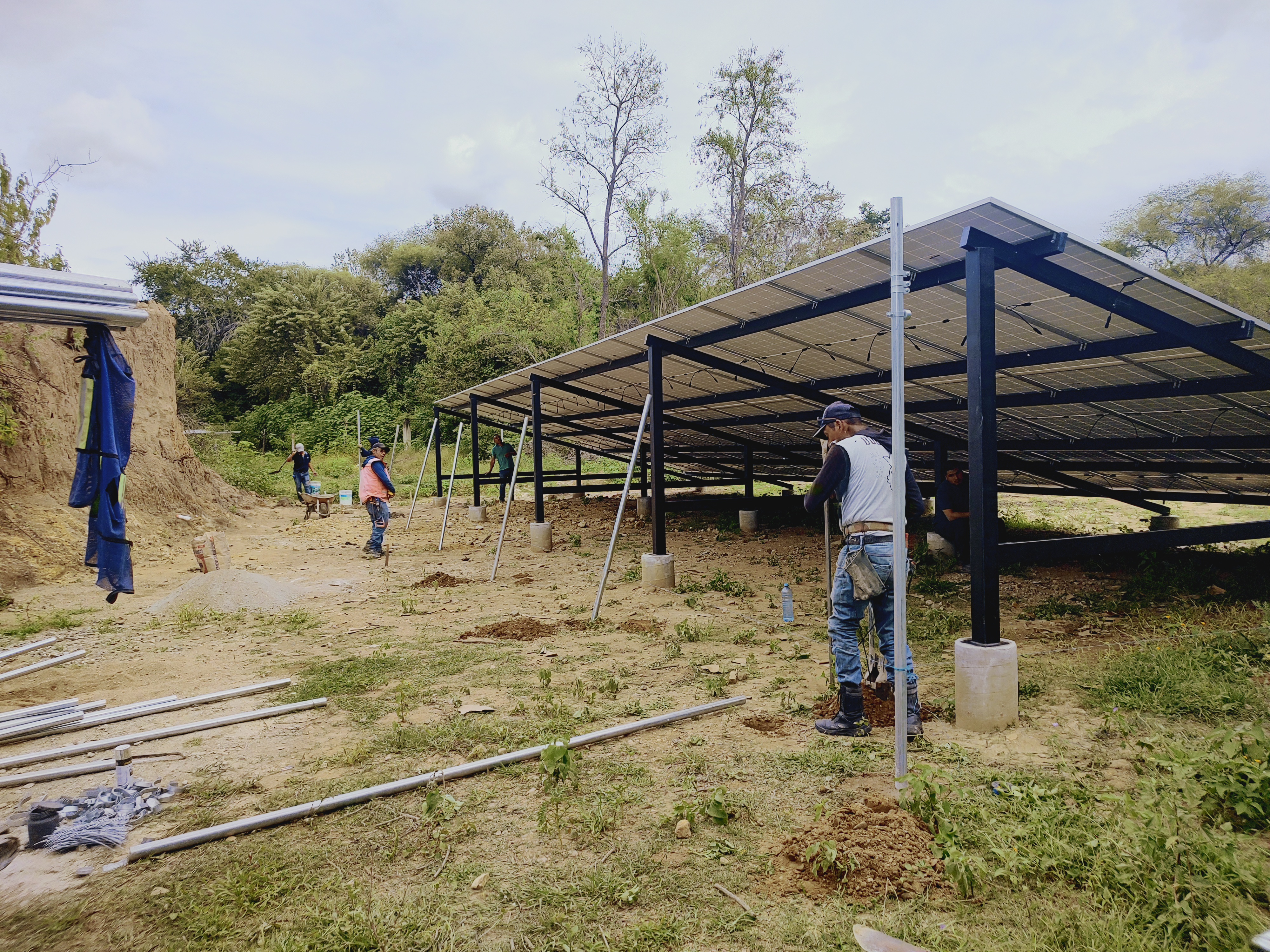TRAZO Y NIVELACIÓN MANUAL EN 200.00 M2 DE TERRENO PARA ESTABLECER EJES Y REFERENCIAS, 54.34 M3 EN EXCAVACIÓN EN CORTES DE TERRENO EN MATERIAL TIPO II-A A MAQUINA, AFINE DE 200 M2 DE TERRENO A MAQUINA, EXCAVACIÓN MANUAL DE 3.24 M3 EN CEPAS EN MATERIAL TIPO II-A Y CONSTRUCCIÓN DE 5.40 M2 DE PLANTILLA DE 05 CM DE ESPESOR A BASE CONCRETO F´C=100 KG/CM2; HABILITADO DE ACERO EN ZAPATAS Y DADOS CON VARILLA DEL No. 3 (3/8”) Y ACERO DE REFUERZO DEL No. 02 PARA ESTRIBOS, CONSTRUCCIÓN DE 5.94 M3 DE CONCRETO F´C=250 KG/CM² EN ZAPATAS Y DADOS; SUMINISTRO Y COLOCACIÓN DE ESTRUCTURA METÁLICA A BASE DE PTR DE 4” Y TUBULAR DE 4”X2”, SUMINISTRO E INSTALACIÓN DE 48 PANELES SOLARES CONNERA 610WP 132CEL, SUMINISTRO Y COLOCACIÓN DE VARIADOR FORWARD MP 3X230 V 55A, SUMINISTRO Y COLOCACIÓN DE SHIELD STRING BOX E INSTALACIÓN DE EQUIPO PARA SELECCIÓN DE ENERGÍA SOLAR O ENERGÍA CONVENCIONAL, INSTALACIÓN DE REACTOR DE ARMÓNICOS 90A Y COLOCACIÓN DE GABINETE; SUMINISTRO Y COLOCACIÓN DE ARRANCADOR A TENSIÓN REDUCIDA Y COLOCACIÓN DE CABLE SUMERGIBLE DE 3X8 Y COLOCACIÓN DE 60 ML DE CERCA A BASE DE MALLA CICLÓNICA CAL. 13.5 DE 2 .00 MTS DE ALTURA CON POSTES DE ARRANQUE DE FLEXIÓN DE 2" (60MM) E INTERMEDIOS DE 1 1/2" (48MM).,