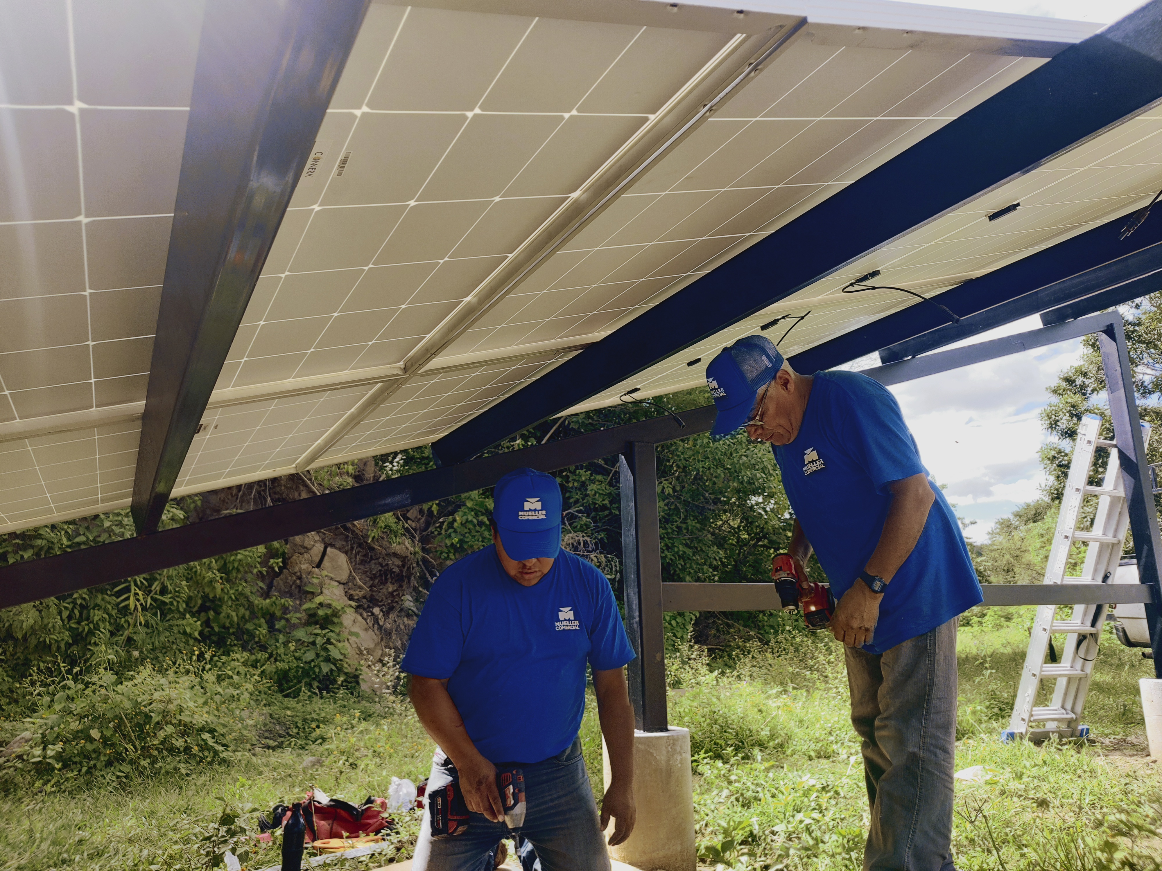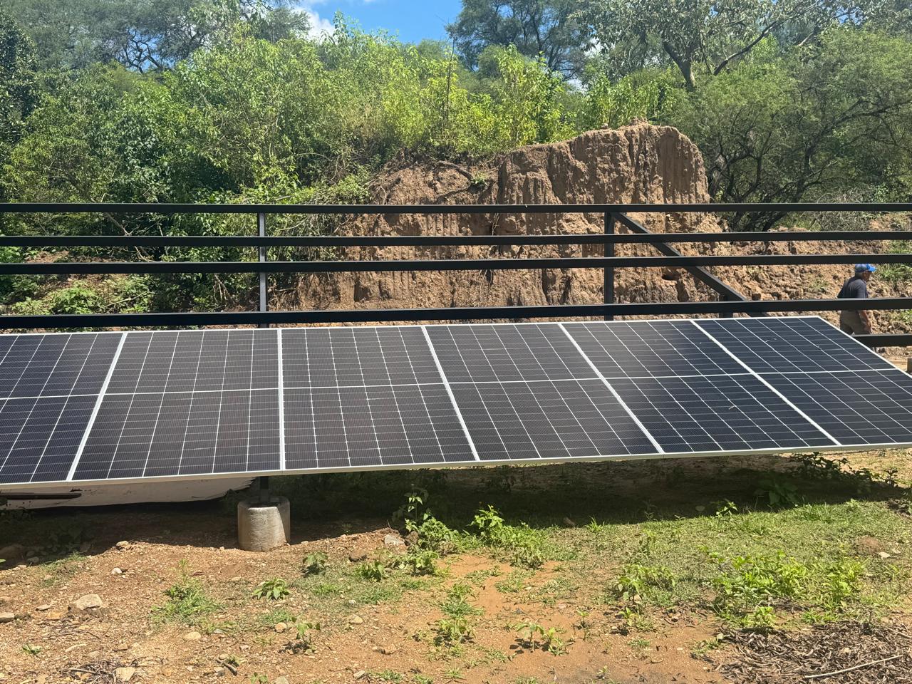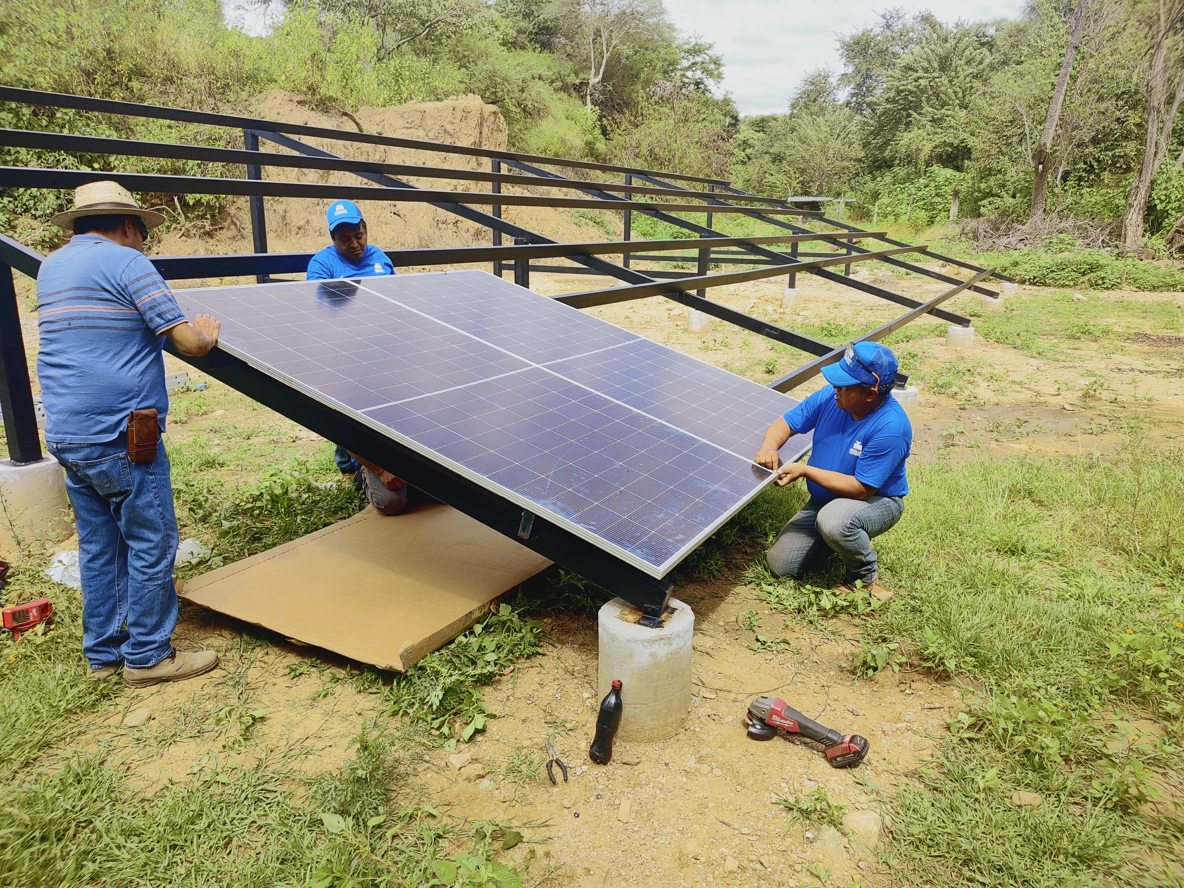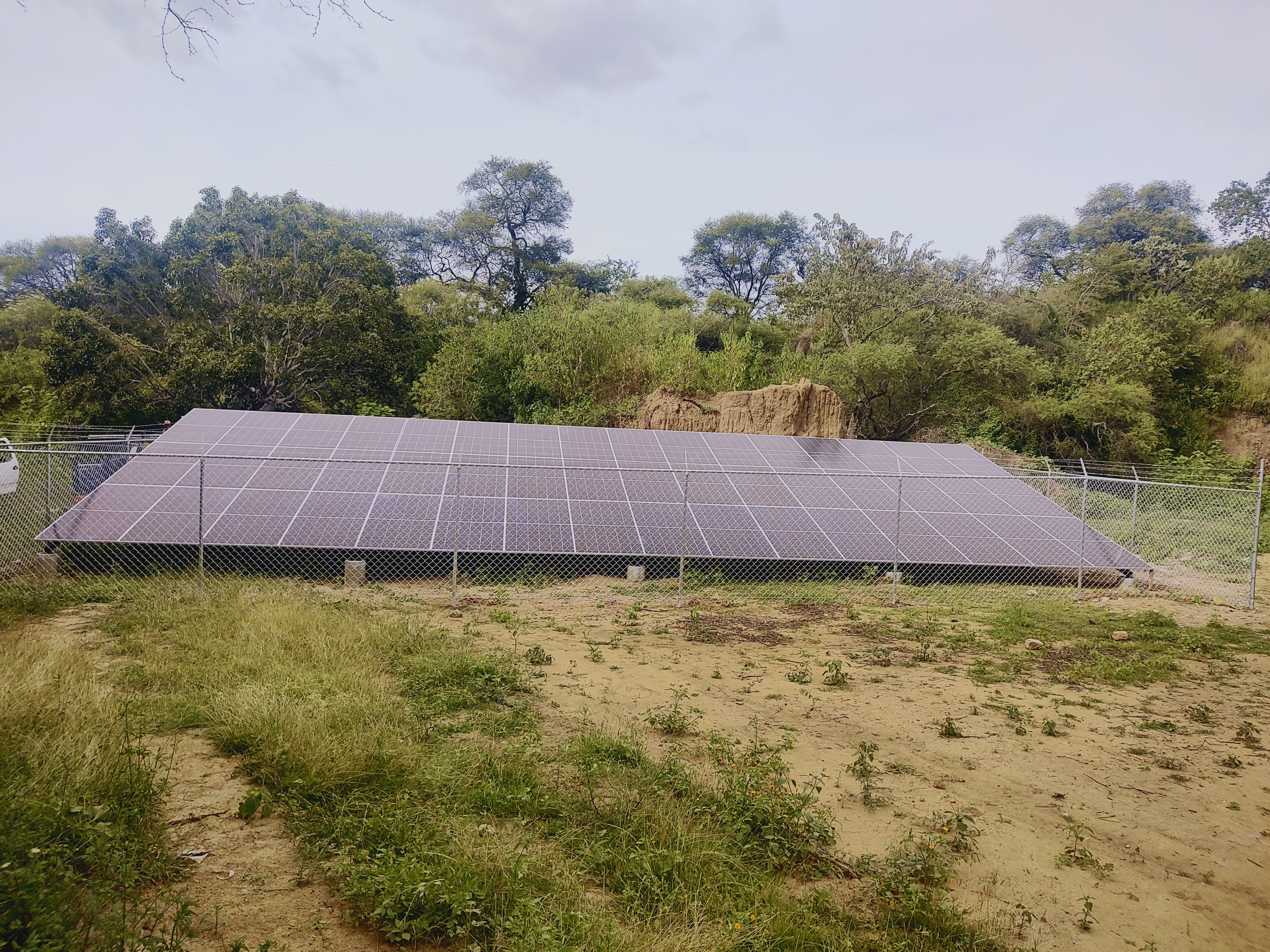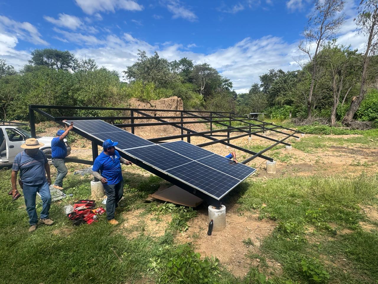 TRAZO Y NIVELACIÓN MANUAL EN 200.00 M2 DE TERRENO PARA ESTABLECER EJES Y REFERENCIAS, 54.34 M3 EN EXCAVACIÓN EN CORTES DE TERRENO EN MATERIAL TIPO II-A A MAQUINA, AFINE DE 200 M2 DE TERRENO A MAQUINA, EXCAVACIÓN MANUAL DE 3.24 M3 EN CEPAS EN MATERIAL TIPO II-A Y CONSTRUCCIÓN DE 5.40 M2 DE PLANTILLA DE 05 CM DE ESPESOR A BASE CONCRETO F´C=100 KG/CM2; HABILITADO DE ACERO EN ZAPATAS Y DADOS CON VARILLA DEL No. 3 (3/8”) Y ACERO DE REFUERZO DEL No. 02 PARA ESTRIBOS, CONSTRUCCIÓN DE 5.94 M3 DE CONCRETO F´C=250 KG/CM² EN ZAPATAS Y DADOS; SUMINISTRO Y COLOCACIÓN DE ESTRUCTURA METÁLICA A BASE DE PTR DE 4” Y TUBULAR DE 4”X2”, SUMINISTRO E INSTALACIÓN DE 48 PANELES SOLARES CONNERA 610WP 132CEL, SUMINISTRO Y COLOCACIÓN DE VARIADOR FORWARD MP 3X230 V 55A, SUMINISTRO Y COLOCACIÓN DE SHIELD STRING BOX E INSTALACIÓN DE EQUIPO PARA SELECCIÓN DE ENERGÍA SOLAR O ENERGÍA CONVENCIONAL, INSTALACIÓN DE REACTOR DE ARMÓNICOS 90A Y COLOCACIÓN DE GABINETE; SUMINISTRO Y COLOCACIÓN DE ARRANCADOR A TENSIÓN REDUCIDA Y COLOCACIÓN DE CABLE SUMERGIBLE DE 3X8 Y COLOCACIÓN DE 60 ML DE CERCA A BASE DE MALLA CICLÓNICA CAL. 13.5 DE 2 .00 MTS DE ALTURA CON POSTES DE ARRANQUE DE FLEXIÓN DE 2" (60MM) E INTERMEDIOS DE 1 1/2" (48MM).,